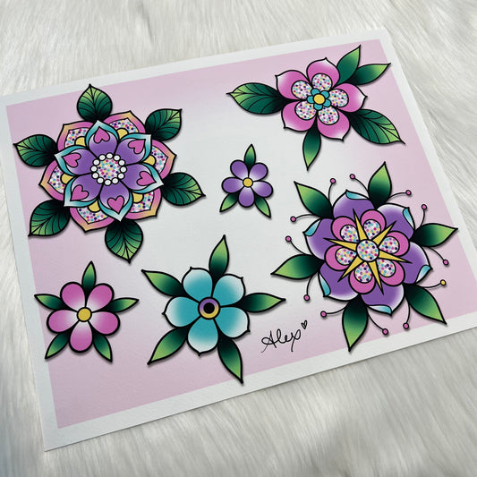 Geo-Flower Tattoo Reference/Coloring Book Vol. 1